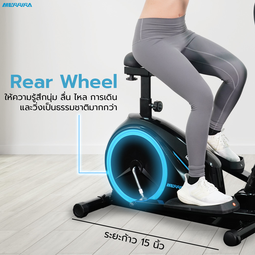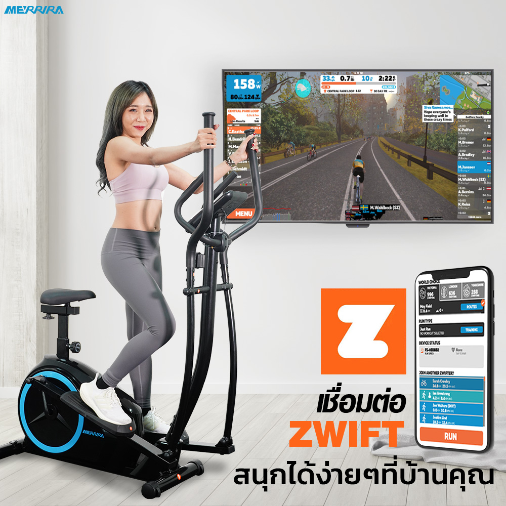 เครื่องเดินวงรี รุ่น Dynamic Plus จาก MERRIRA จานล้อ 5 กก. ระยะก้าว 15 นิ้ว ปรับความหนืด 8 ระดับ ระบบแม่เหล็ก นุ่ม เงียบ ลดแรงกระแทกที่ข้อเข่า และข้อเท้า สามารถเชื่อมต่อ ZWIFT ได้