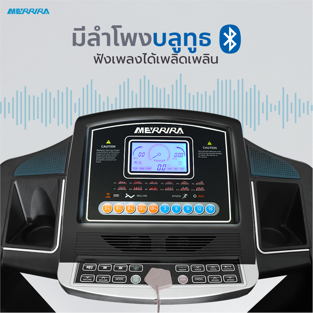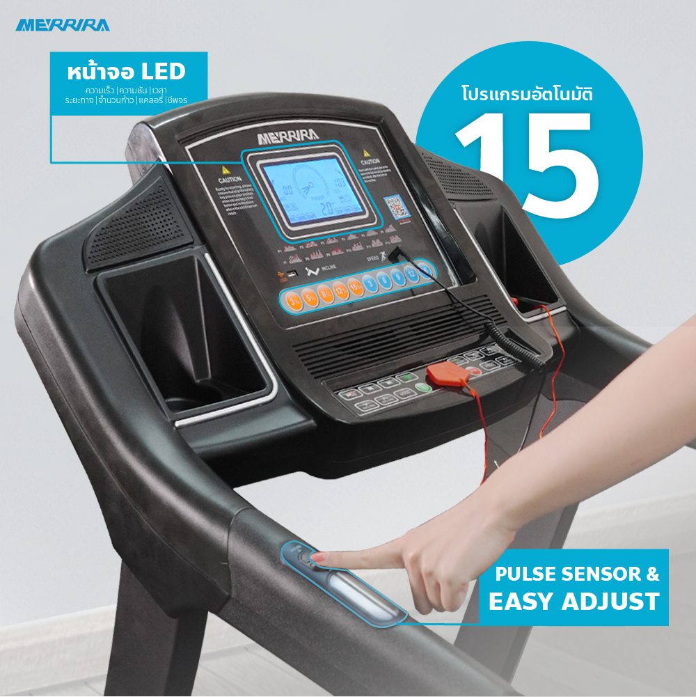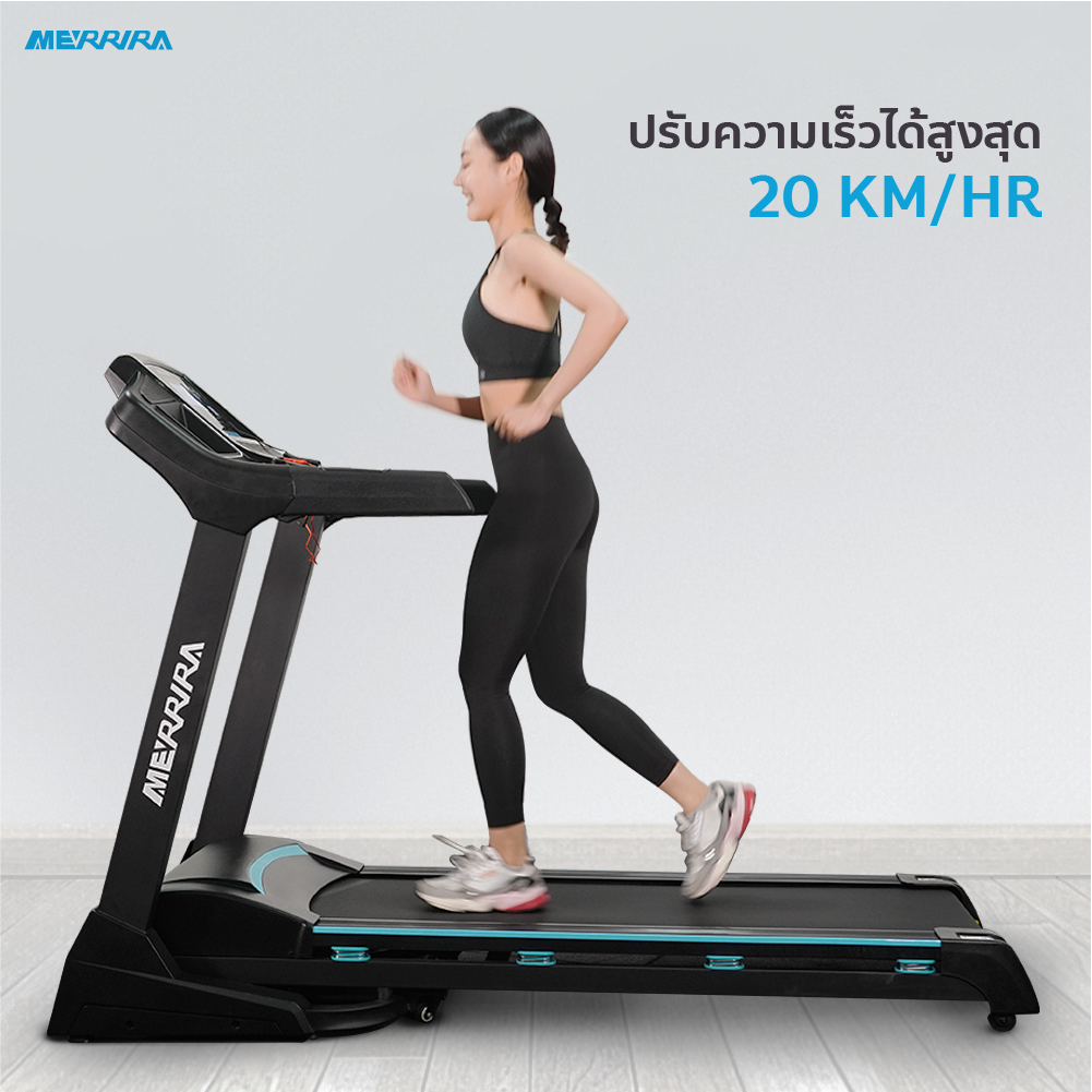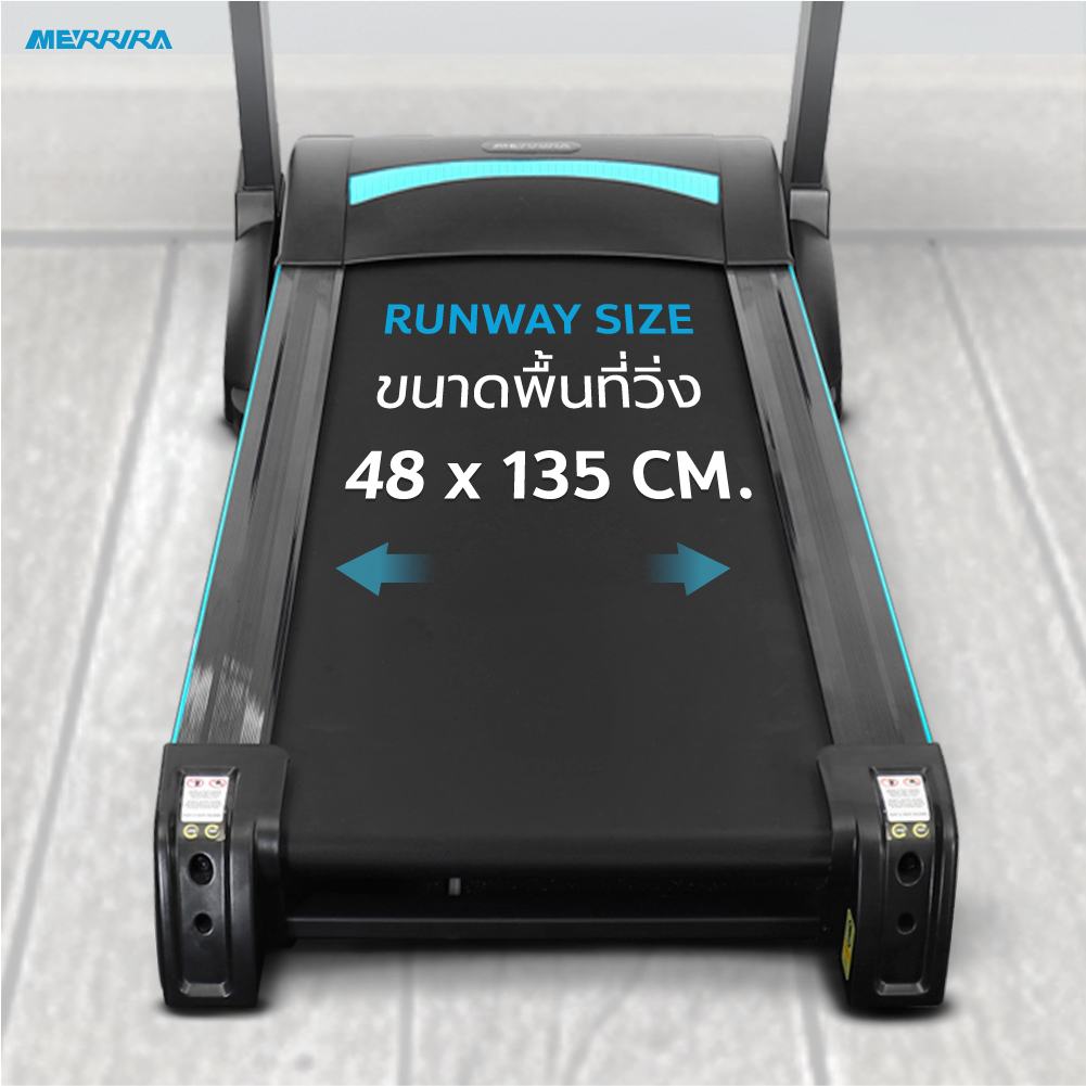 ลู่วิ่งไฟฟ้า รุ่น MILLENIUM จาก MERRIRA™ มอเตอร์ 4.5 HP พื้นที่วิ่ง กว้าง 48 ซม. x ยาว 135 ซม. ความเร็วสูงสุด 20 กม./ชม. ปรับความชันอัตโนมัติ 20 ระดับ Auto-Incline รับน้ำหนักได้สูงสุด 140 กิโลกรัม หน้าจอ LCD 5 นิ้ว **หลังใช้งาน 1 ชั่วโมง ให้พักเครื่อง 10-15 นาที ก่อนเพื่อยืดอายุการใช้งาน**